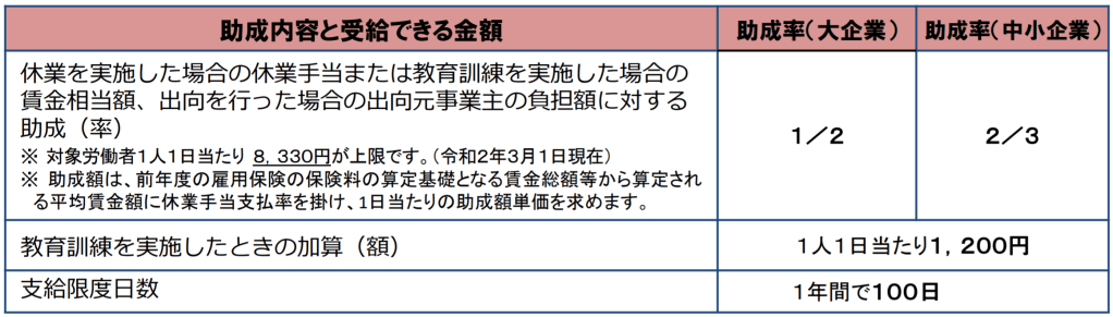 「経済上の理由」で、事業活動の縮小により雇用調整せざるを得ない事業主が、従業員に対して一時的な休業や教育訓練、出向を実施し雇用を維持した場合に助成されます。