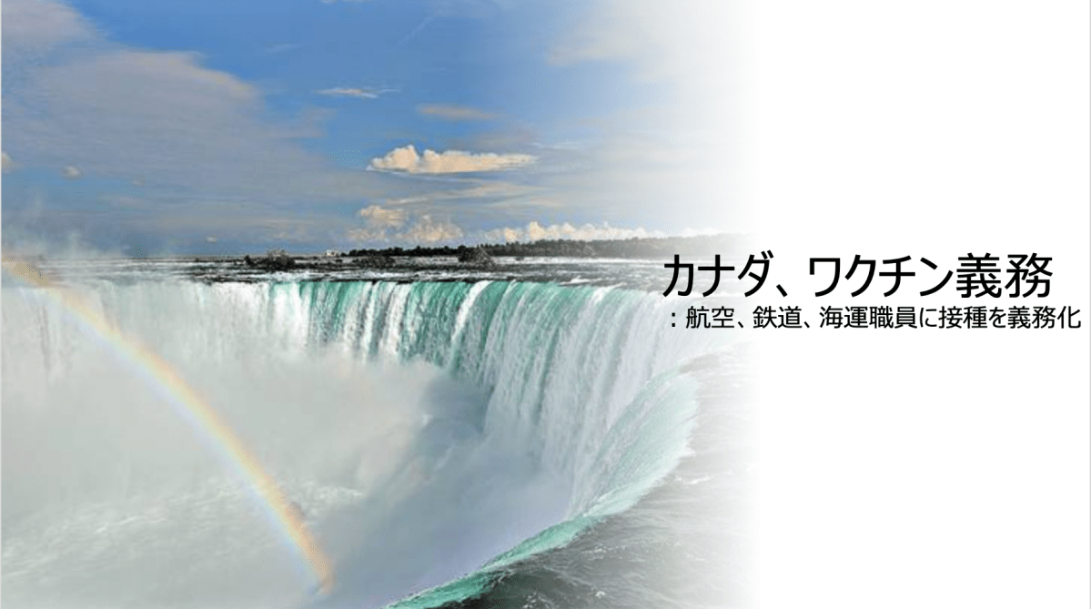 カナダのアルガブラ運輸相は今月13日に、遅くとも10月末までに政府の管轄下にある航空、鉄道、海運の職員にワクチン接種を義務化すると発表しました。健康上の理由がある場合を除き、接種を拒否すると解雇の対象となります。