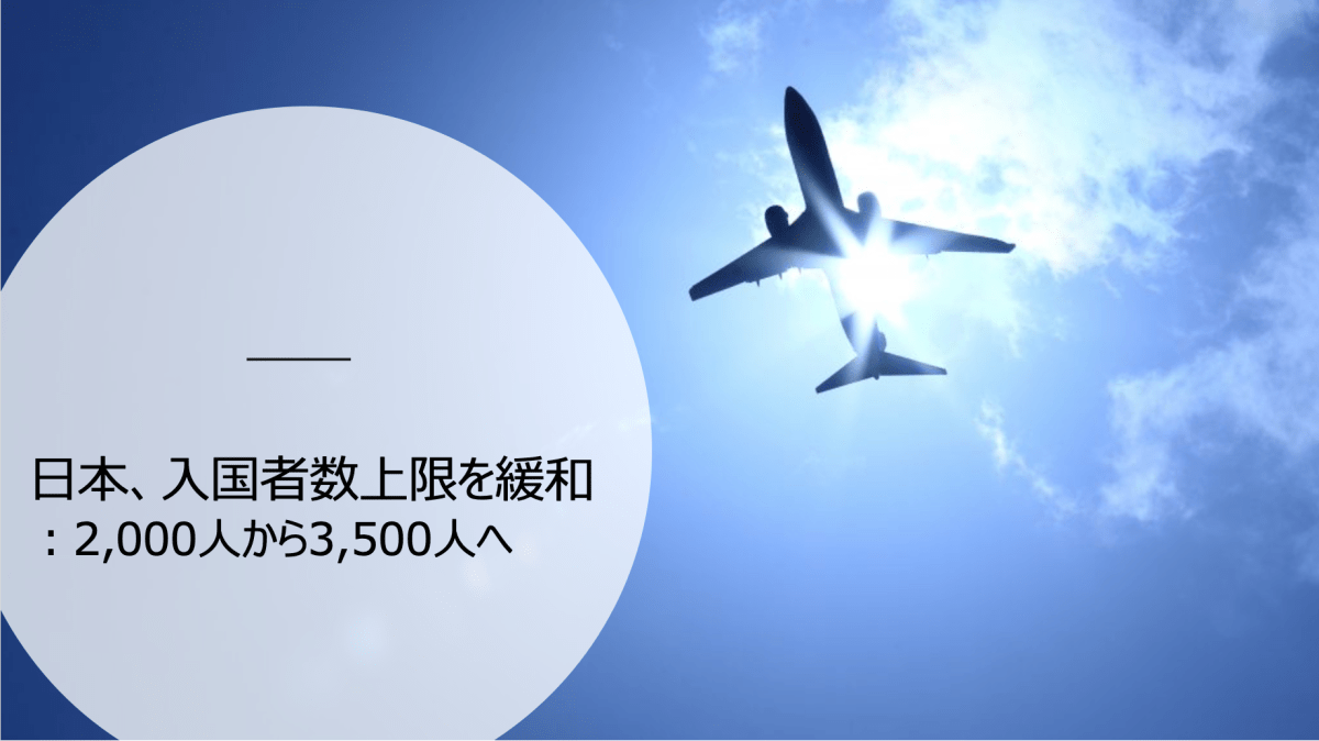 今年3月以降、新型コロナウイルスの水際対策の強化に向け、1日あたり約2,000人に制限されていた日本への入国者数の上限が、2021年8月16日より約3,500人に緩和されたことが明らかになりました。
