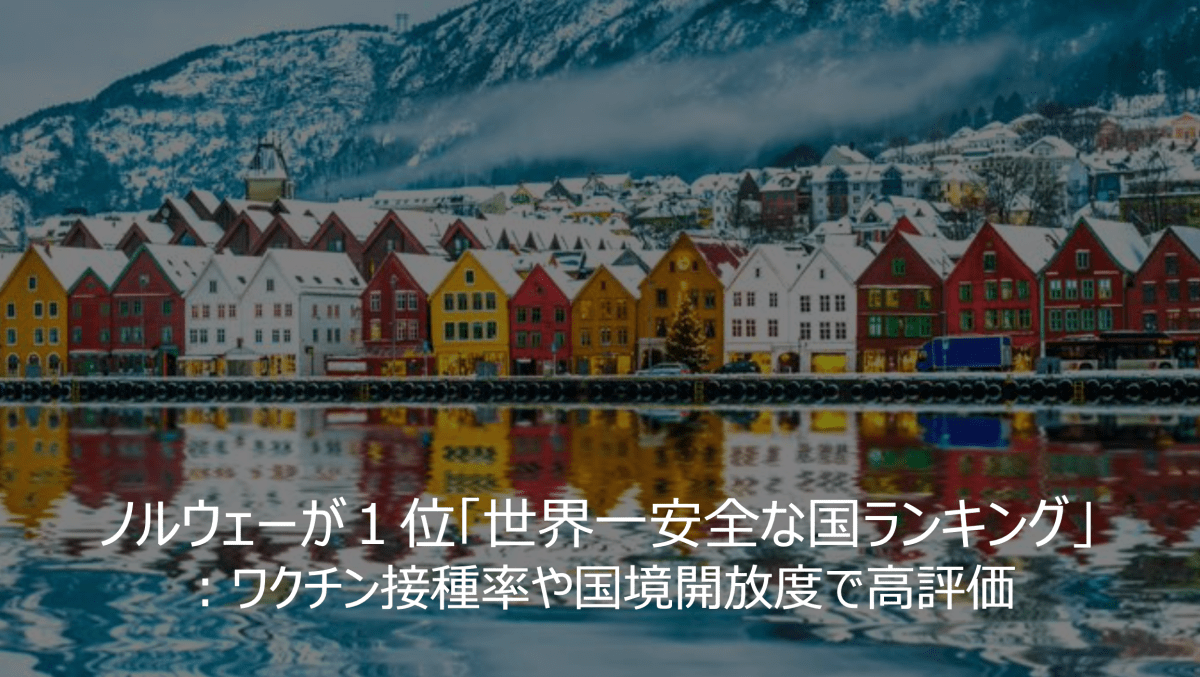 アメリカの大手総合情報サービス会社であるブルームバーグは、2020年以降、53の国・地域を対象に最も安全な国・地域の番付である「COVIDレジリエンス(耐性)ランキング」を発表しています。社会や経済への打撃を最小限に抑えながら、新型コロナウイルス感染症に効果的に対応できている国と地域が上位を占めるこのランキングで、7月は前月1位に浮上したアメリカが5位に後退、ノルウェーが1位になりました。