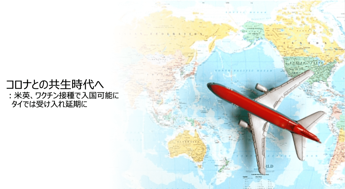 新型コロナウイルスのパンデミックが始まって以来、多くの国が水際対策として、国境を閉ざしてきました。今年に入ってからは、新型コロナウイルス感染症のワクチン接種が先進国を中心に急ピッチで進み、「ワクチン接種」が国境再開の鍵を握ると言われ続けてきました。そして現在、各国・地域がワクチン接種を条件に国境再開や規制緩和をしつつあります。
