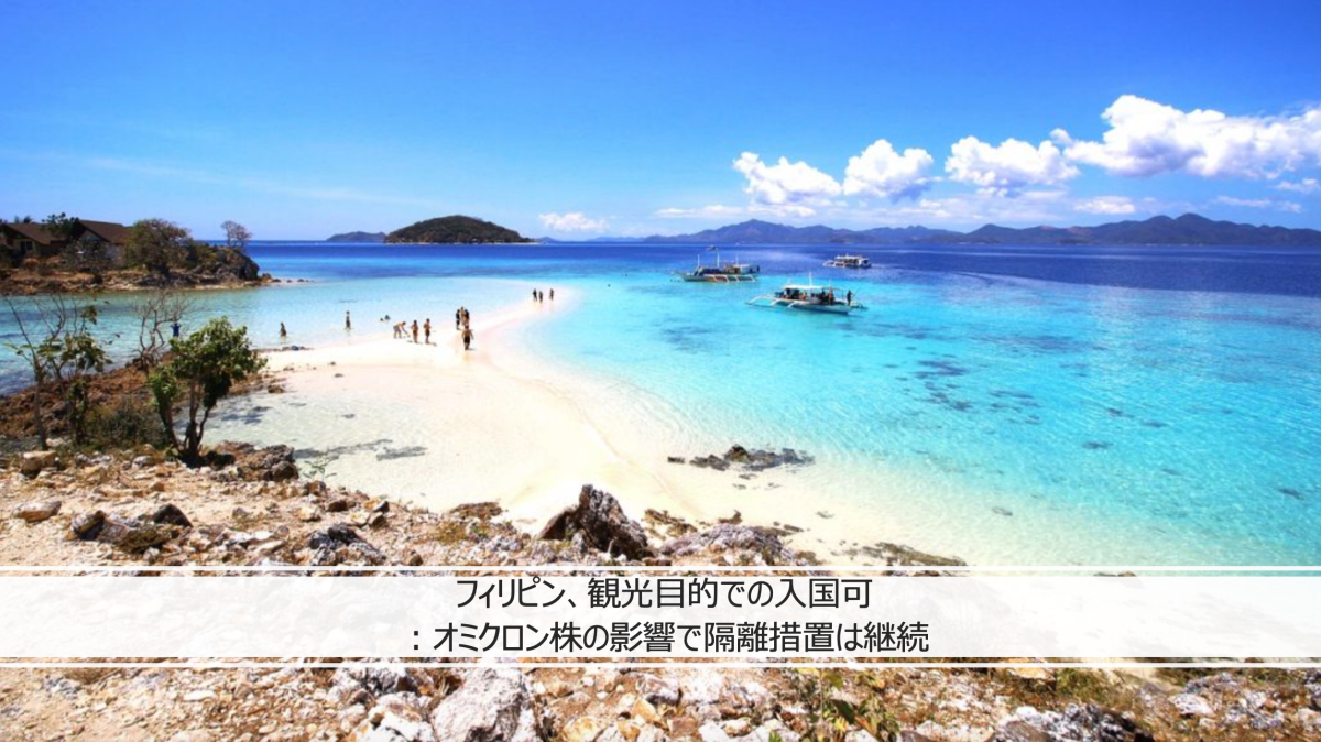 オミクロン株の感染拡大の影響により中止になりましたが、フィリピン政府は12月より、日本など約30の国・地域を対象にワクチン接種完了済みの観光客をワクチン接種完了など一定の条件を満たせば、隔離なしで入国可能と発表していました。