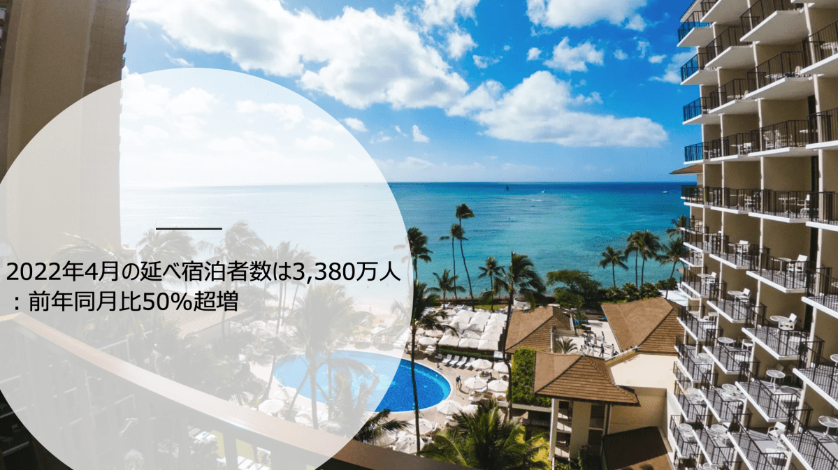 2022年4月の延べ宿泊者数は3,380万人:前年同月比50%超増